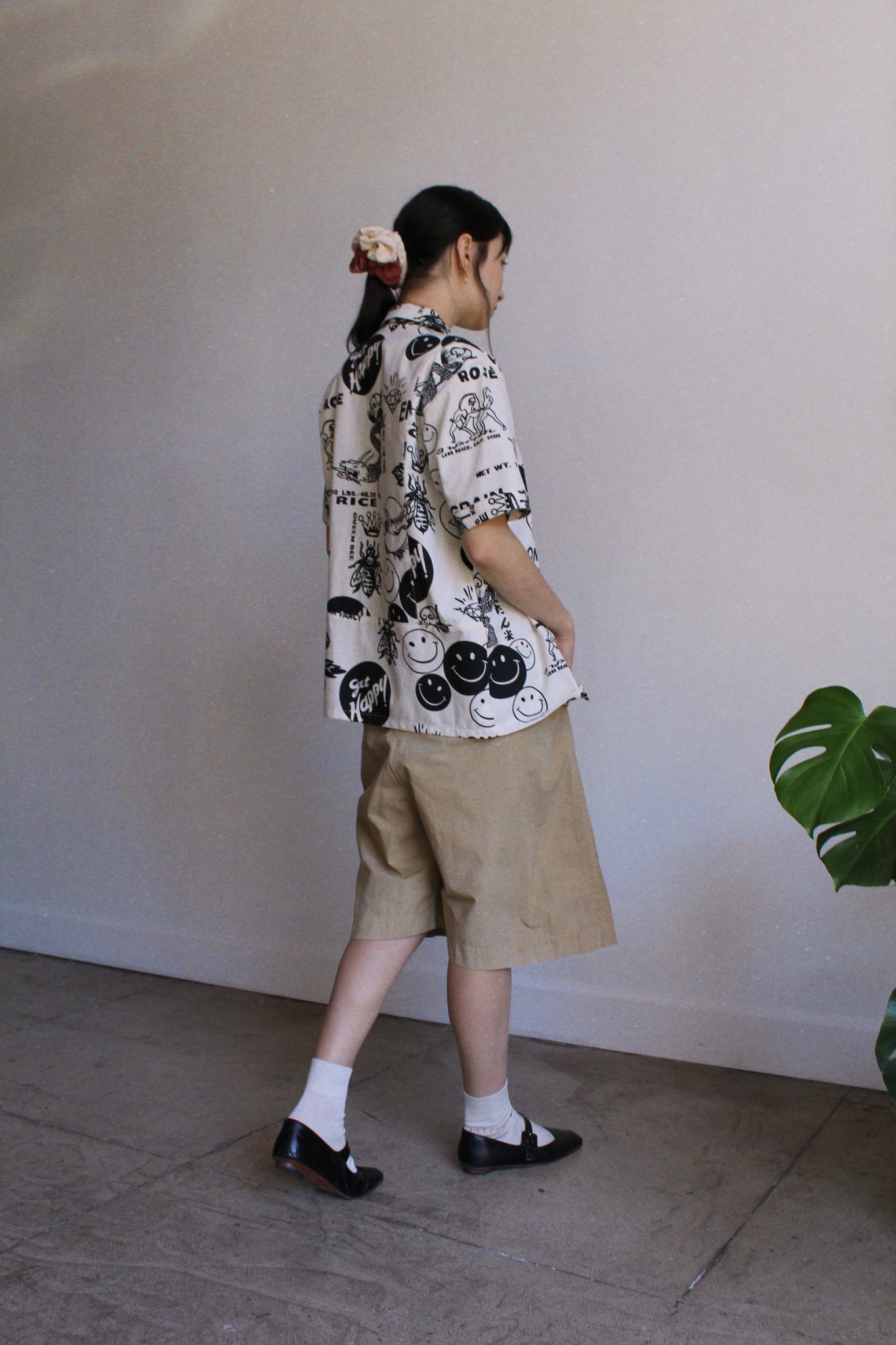Each shirt has unique characteristics with variations in print placement and patchwork, making no two shirts alike